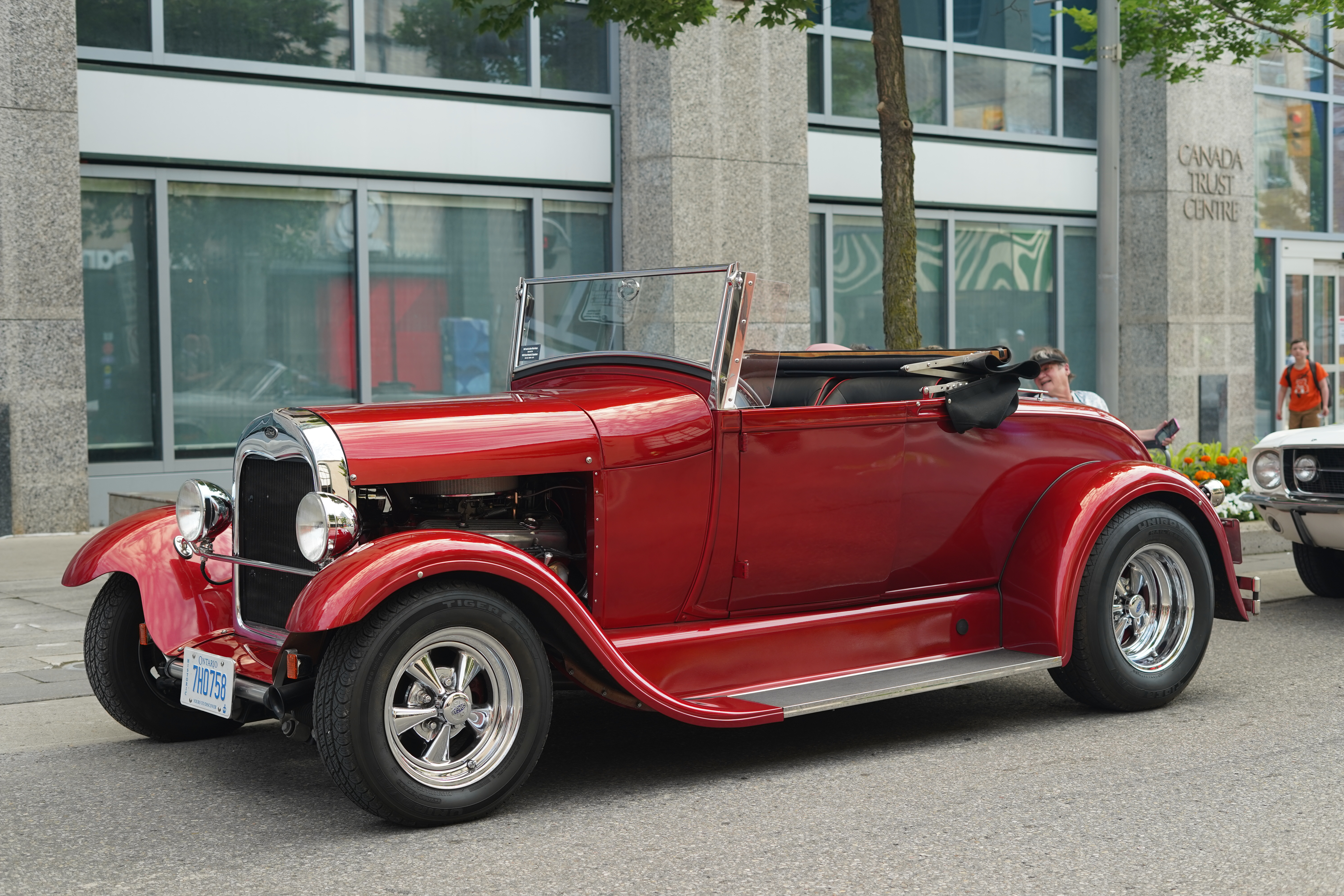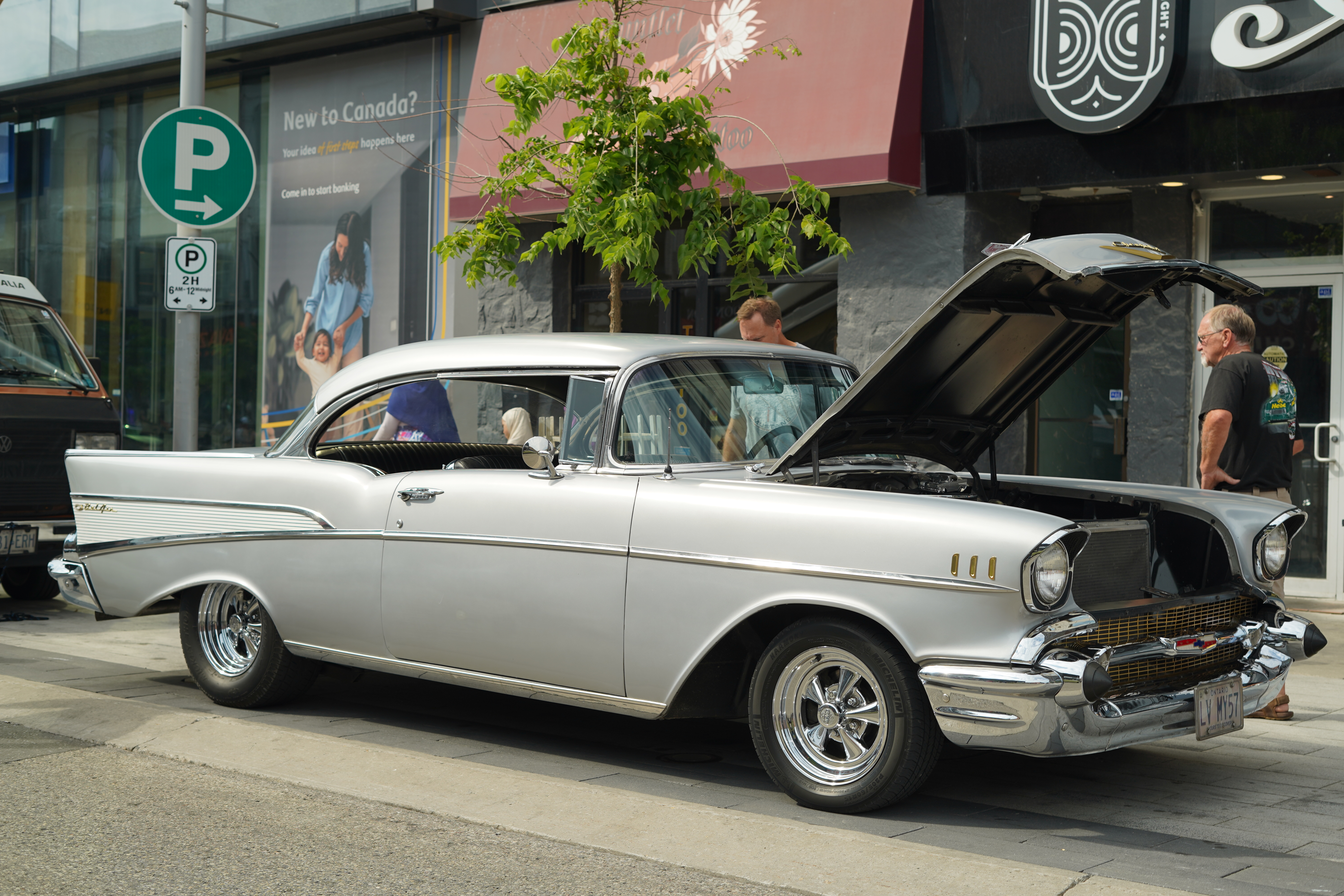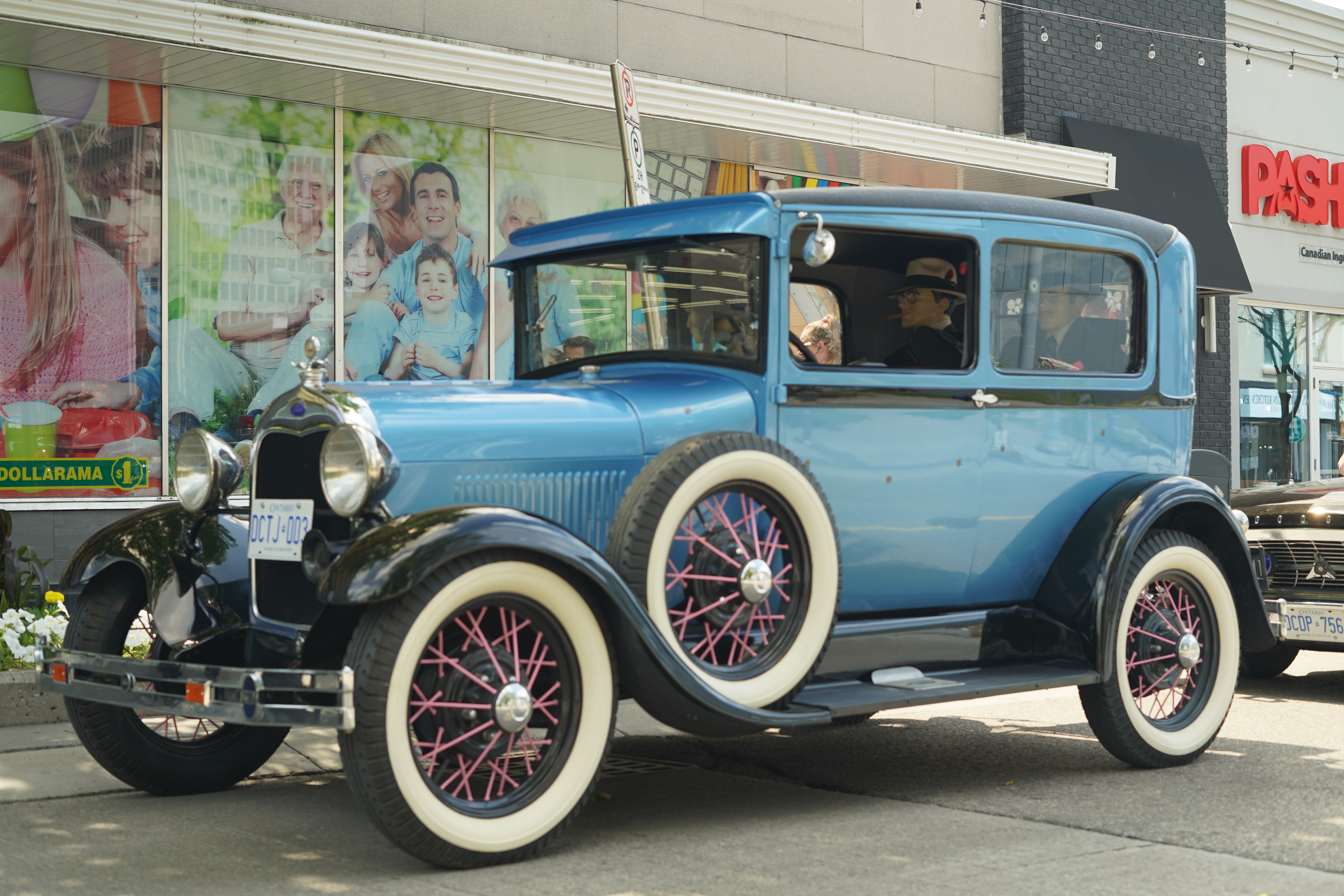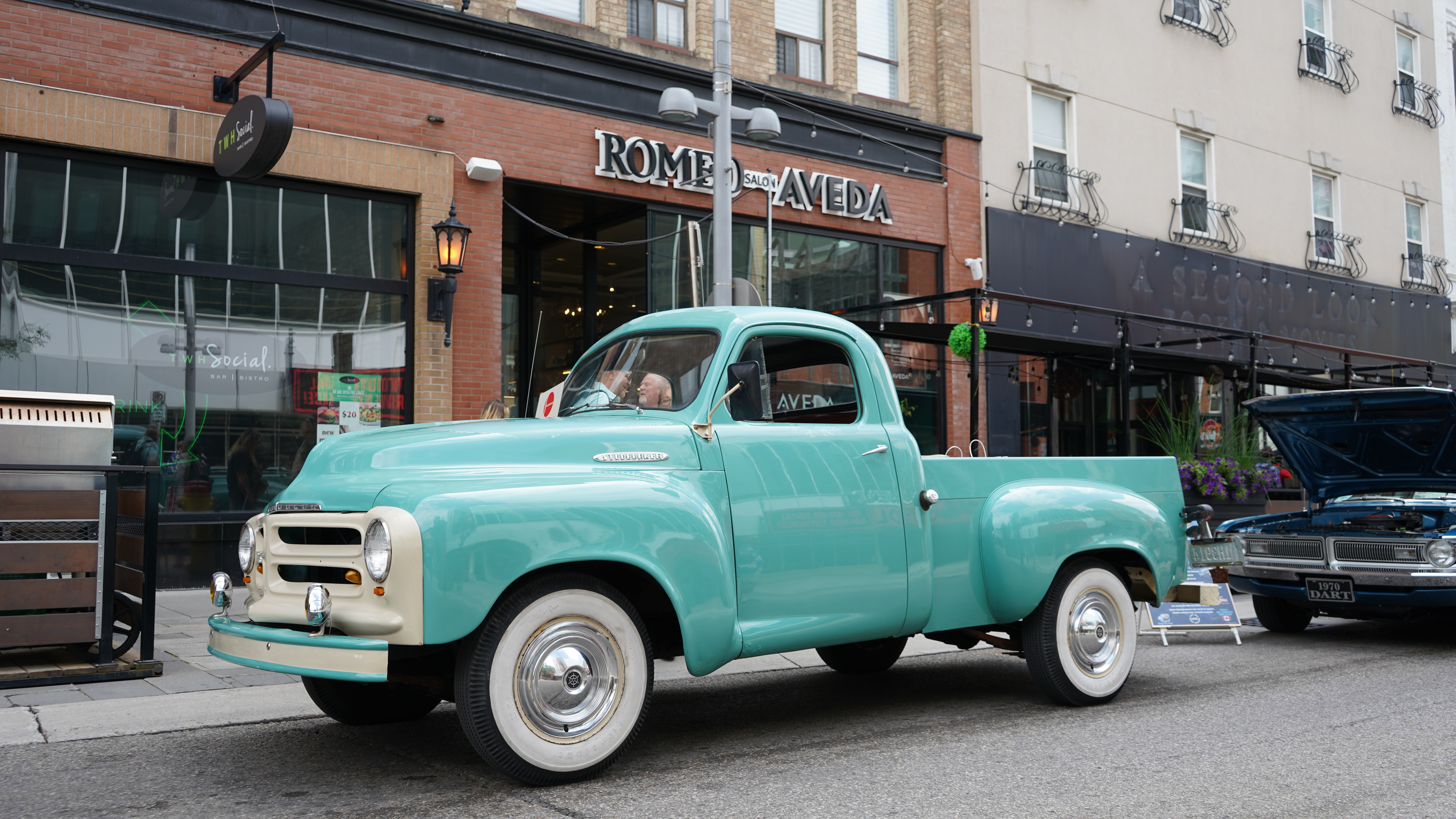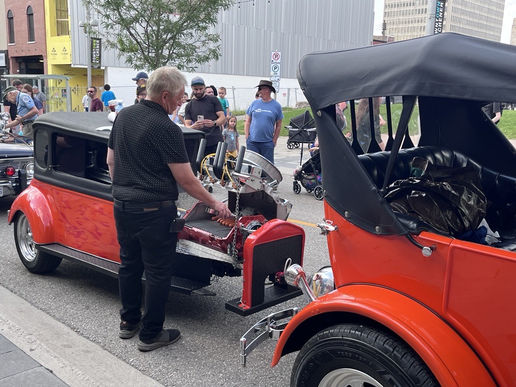 Classic cars line King Street surrounded by live entertainment and bustling patios.
