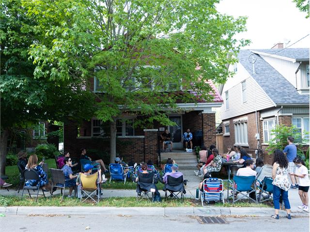 Every year, up to 100 residents host a musician/group for a one-hour performance on their porch, driveway, or front yard for their neighbours to enjoy!