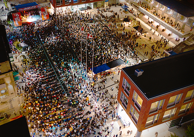 While there is no dedicated bike parking within the festival grounds, there is secure bike parking in the City Hall parking garage and bike racks throughout downtown Kitchener where you can park your bike if you ride it to the festival. Visit our bike parking page for more information about bike parking in Kitchener and to find a location to park your bike.