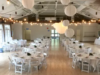 The large, well-lit room features a stage, large windows and capacity for 250 people. It is an ideal location for banquets, business events and live performances. Victoria Park Pavilion is a popular wedding reception venue.