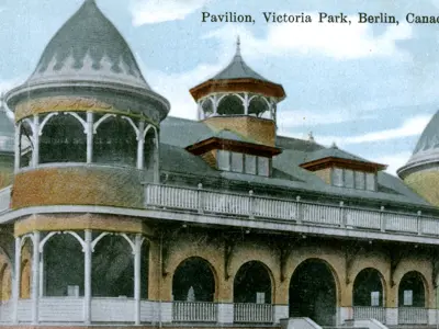 Nestled among natural gardens, this 1920s pavilion overlooks Victoria Park in downtown Kitchener.