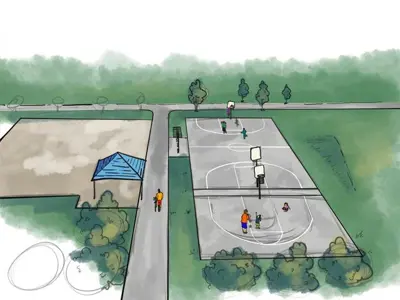 In response to growing community interest and popularity of the existing basketball court, the court area is being expanded by adding a half court beside the current full court. This will help reduce congestion during peak times and support more casual play, practice and small-group games. The new half court will also feature a basketball net at a lower height, creating a more inclusive space for all ages and abilities.