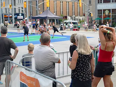 Downtown Paddle Palooza Pickleball Festival is an annual pickleball tournament and celebration of all things pickleball. It takes place in Carl Zehr Square and King Street in front of city hall on the fourth Tuesday in August.